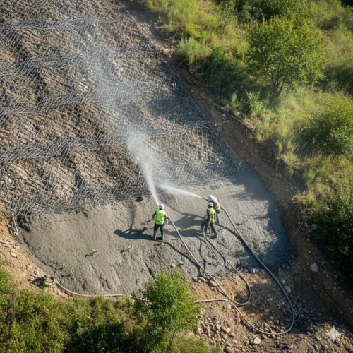 - Concretagem Projetada: Consiste na projeção de concreto diretamente na superfície do talude, criando uma camada resistente que evita o deslizamento do solo.